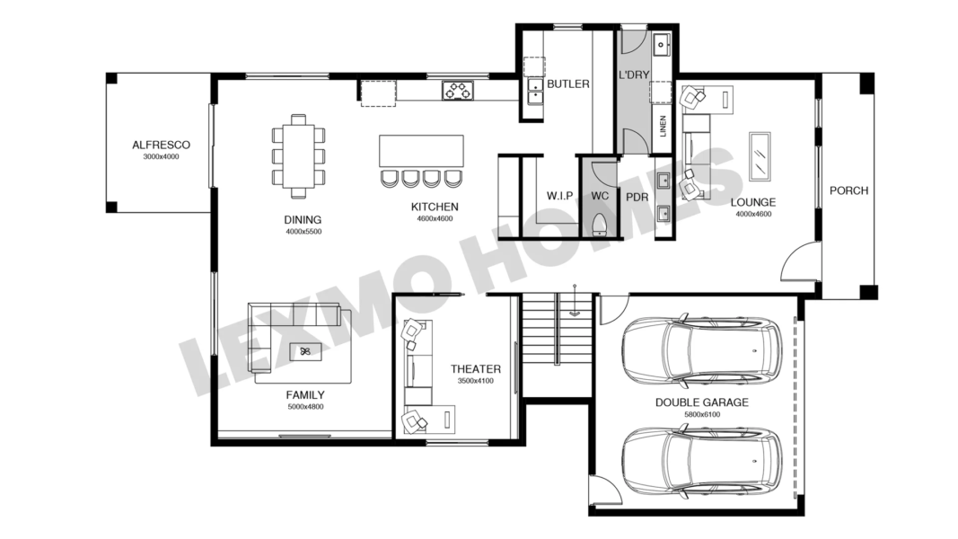 The house designs presented by Lexmo Homes are for informational purposes only and are not intended to be a representation of the finished product. The final product may vary based on site conditions, materials, and other factors that may affect construction. Lexmo Homes reserves the right to make changes to these designs without notice. The information contained in the designs is believed to be accurate but is not guaranteed. Lexmo Homes is not responsible for any errors or omissions, or for the results obtained from the use of this information. Please consult with a Lexmo Homes representative for more information on the construction process and final product.